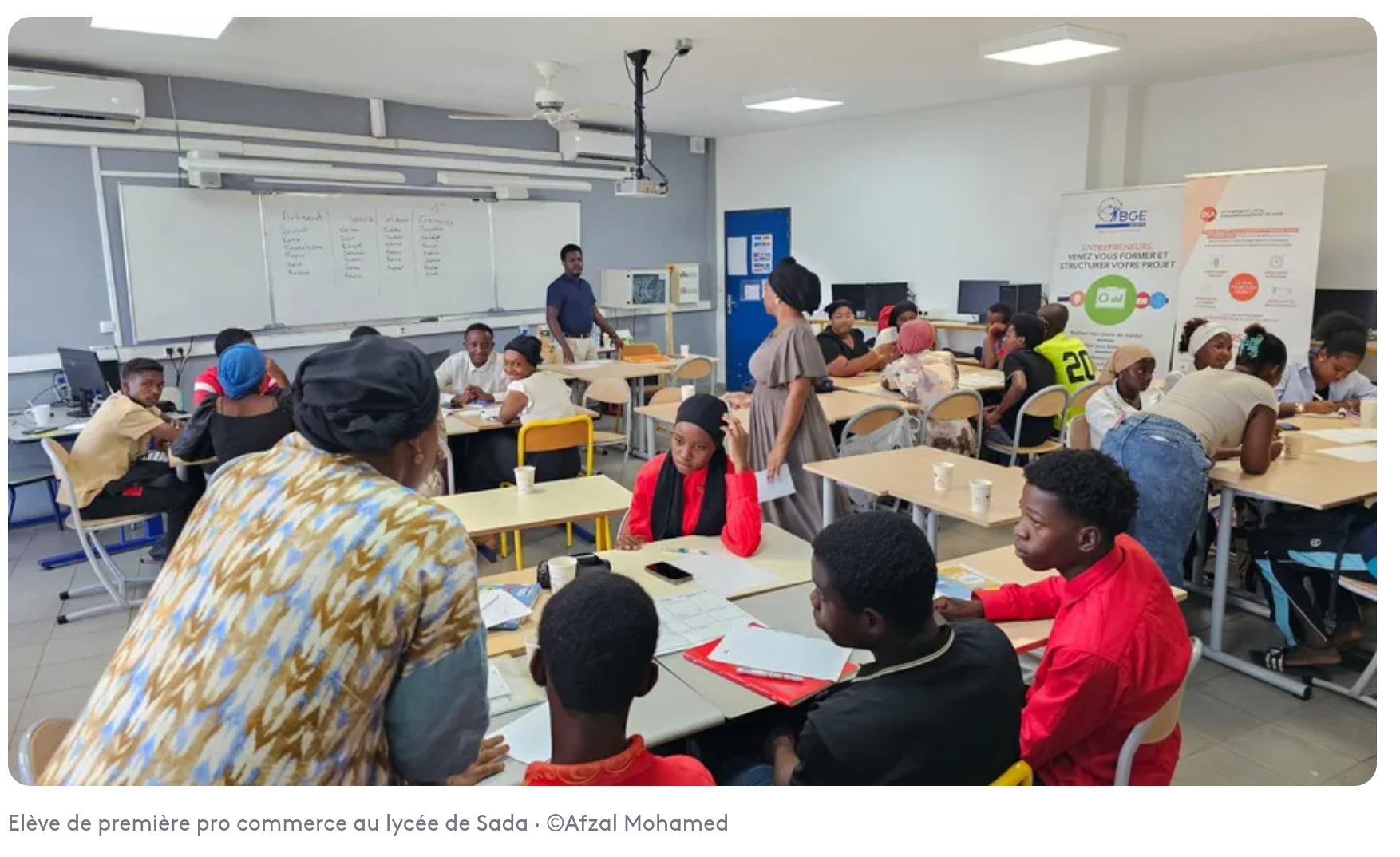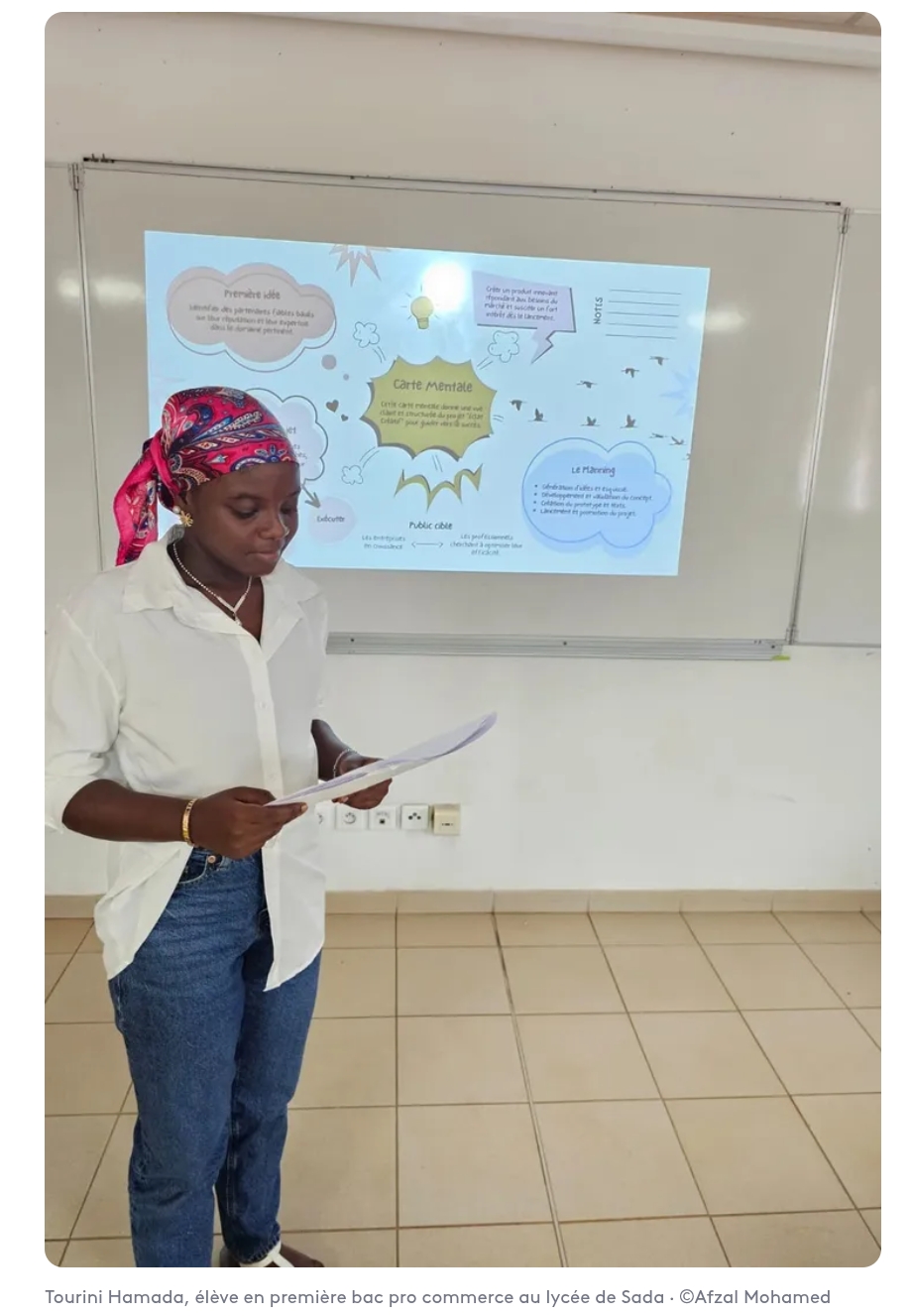 Au Lycée de Sada, les élèves de 1ère Bac Pro Commerce ne se contentent pas d’apprendre les fondamentaux de la vente et de la relation client. Dans le cadre du projet pédagogique « Révélatrice des talents », mené par leur enseignant Afzal Mohamed et Inaya Ali cheffe de projet BGE (structure qui accompagne les entrepreneurs ), ils ont exploré le monde de l’entrepreneuriat.