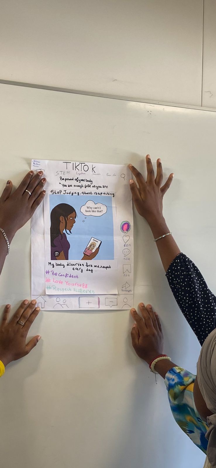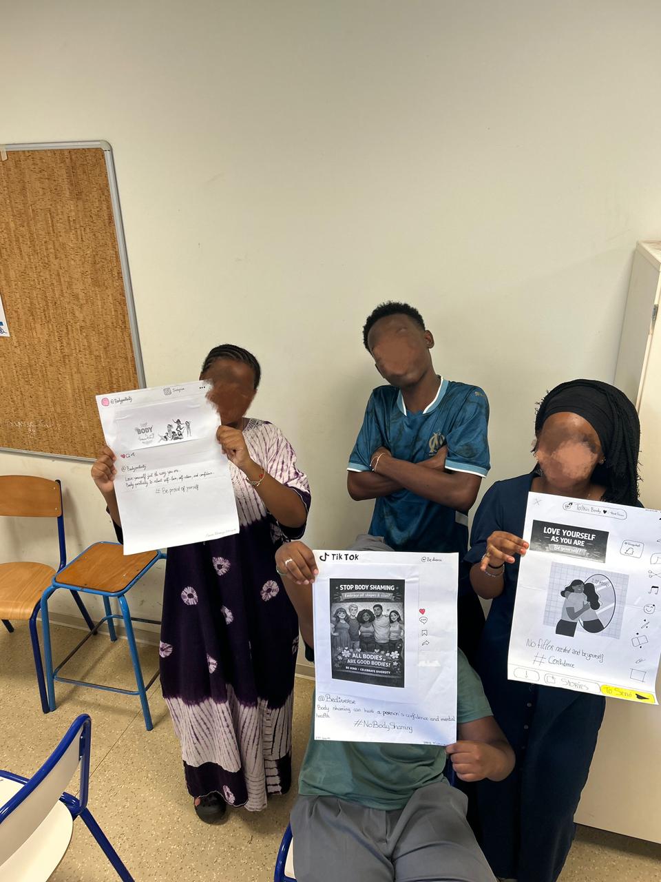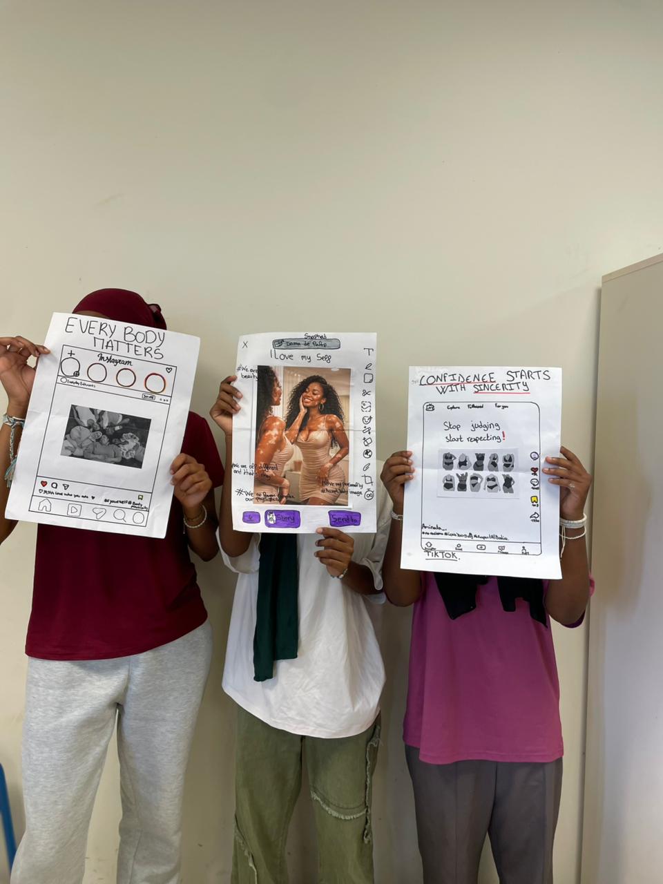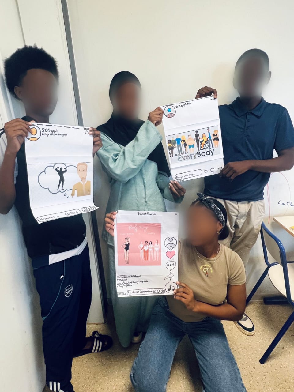 Pour valider cette séquence, la tâche finale demandée aux élèves était concrète et créative : concevoir une campagne de sensibilisation. Leur mission ? Créer des supports destinés à la communauté scolaire pour promouvoir un message positif et lutter contre les complexes.
